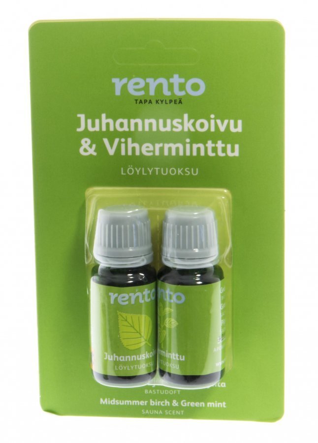 Juhannuskoivu tuo saunaasi alkukesän tuoksuja ja vastasidotun vihdan tuoreita aromeja. Viherminttu herättää saunojan aistit. Vastapoimittuja mintunlehtiä ja polkkakarkkia. Lisää 3-6 tippaa tuoksua löylykauhalliseen vettä.